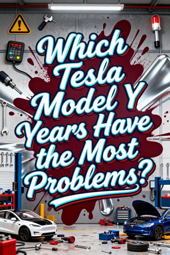 The 2020 and 2021 Model Y years experienced the most significant problems, with the 2020 model recording 21 recalls and the 2021 variant accumulating over 1,125 federal complaints. You’ll find systemic issues including suspension safety defects, faulty heat pump sensors, backup camera failures, and persistent paint and panel gap problems across these early production runs. Both years scored poorly on reliability metrics, with the 2020 achieving just 36/100 in reliability ratings. Understanding the specific technical failures and subsequent improvements helps you make an informed purchasing decision.